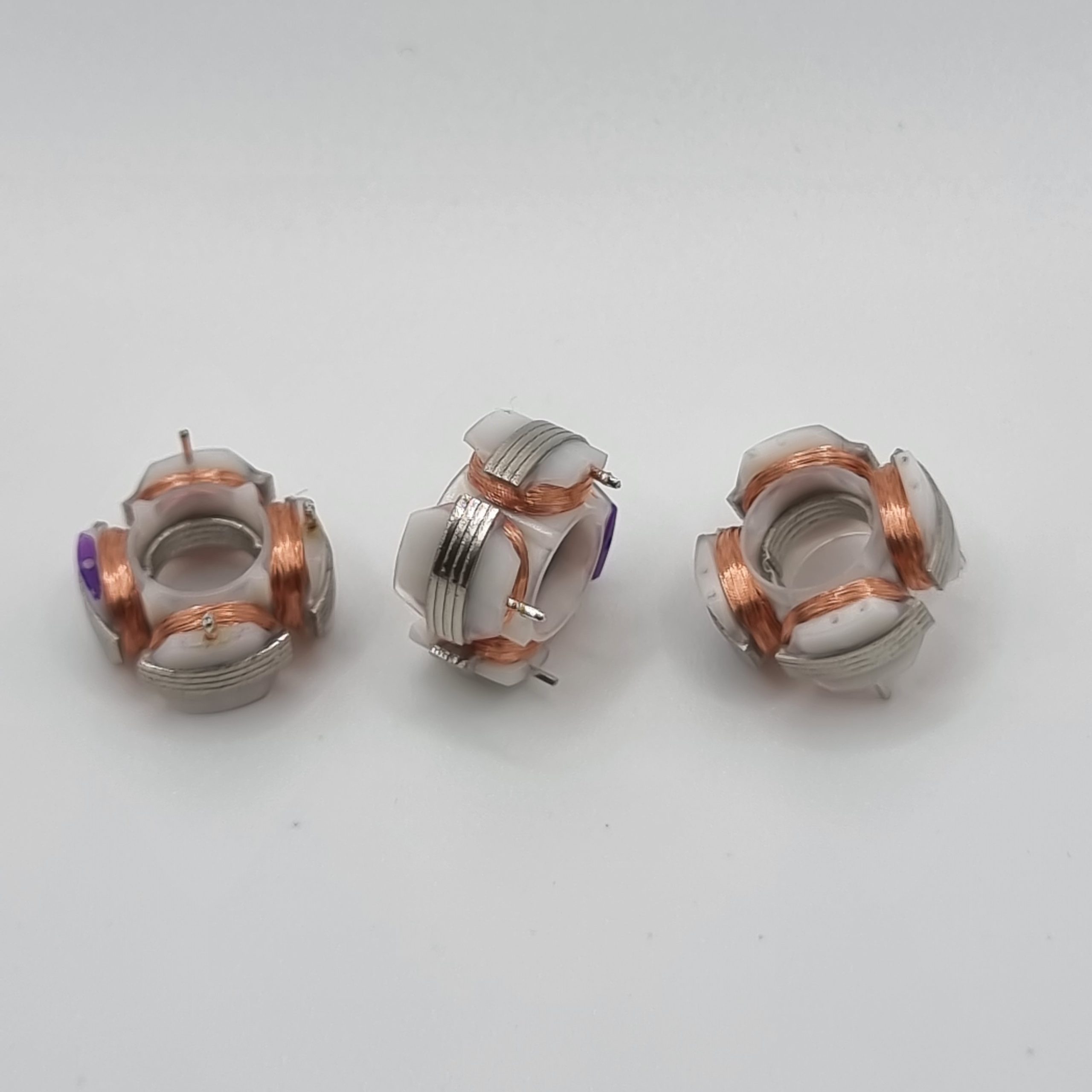 This product serves as a stator of DC motor for cooling fan of car navigation and headlight assembly.