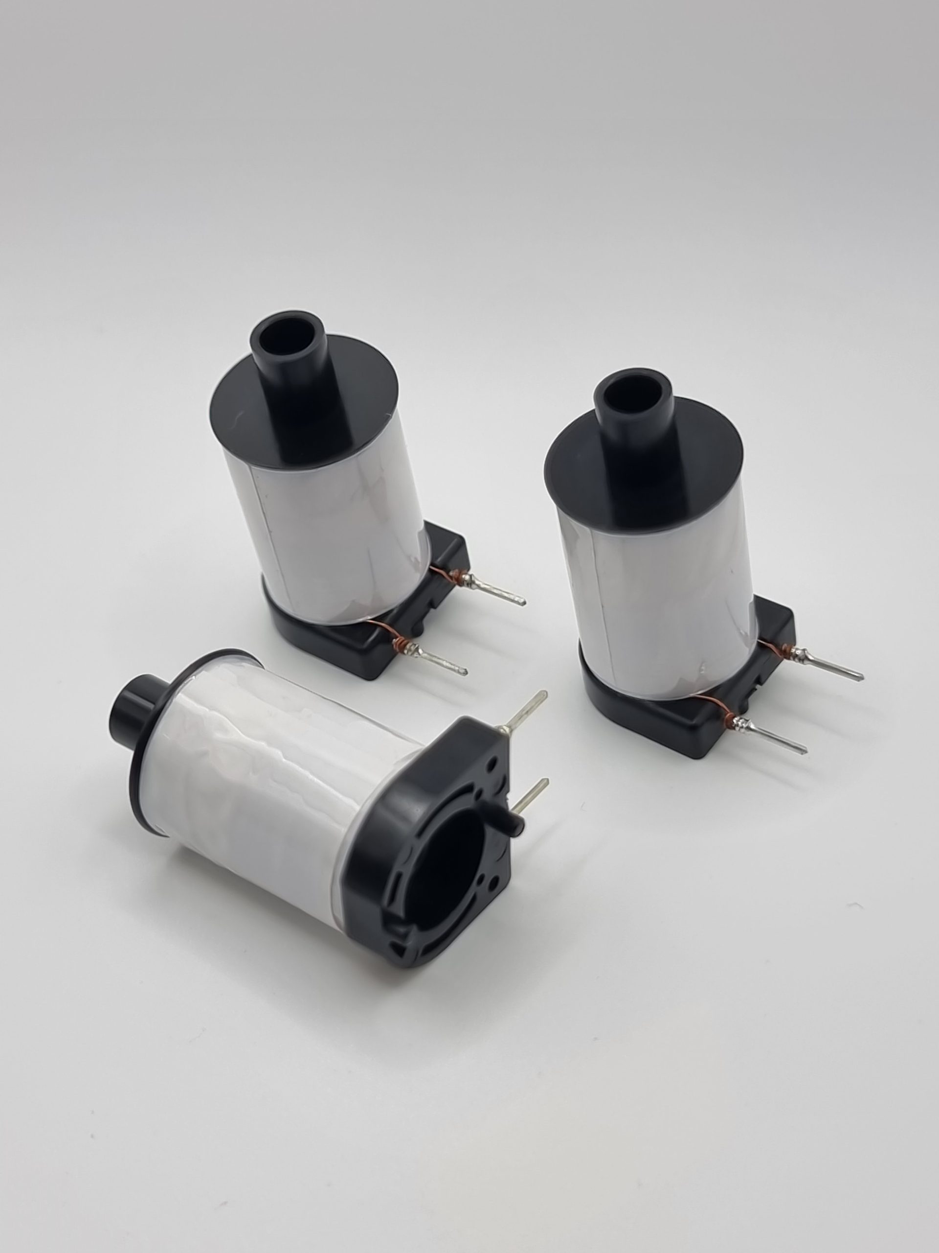 The shutter coil assembly is made out of coil wound in plastic bobbin, where the lead wires of the coil are soldered to terminal pins. This electronic part is assembled in shut-off valves, a device that can close a line and stop the flow of material when an uncertain condition occurs.
